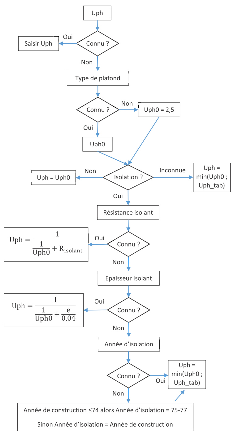 Uph0 est le coefficient de transmission thermique du plancher haut non isolé (W/(m².K)).