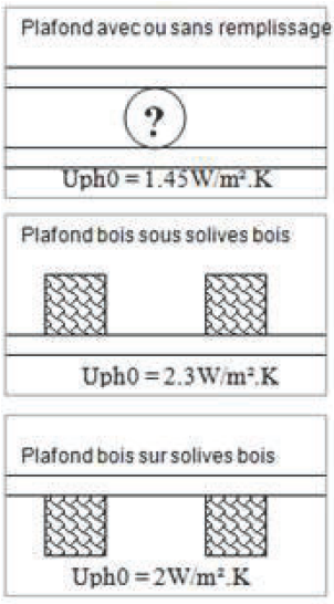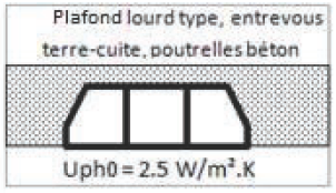 Plafond en plaque de plâtre : Uph0 = 2,5 W/(m².K)