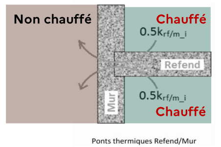 Seuls les murs et refends constitués d’un matériau lourd (béton, brique, …) sont considérés ici. Pour les autres cas, ce pont thermique est pris nul.