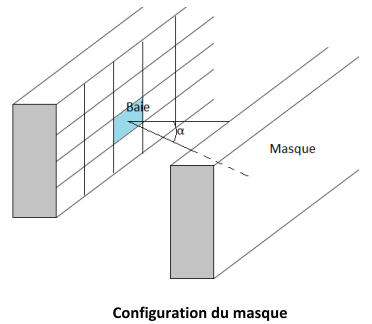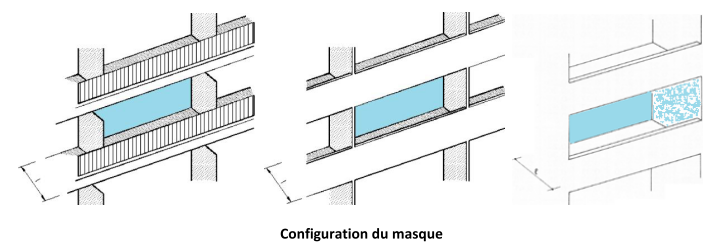 | Les masques lointains sont évalués au niveau de la baie la plus proche du centre de la façade avant de s’appliquer à toutes les baies de cette façade. |