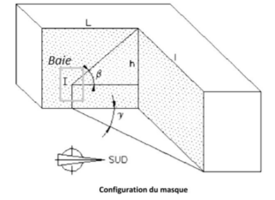 Une paroi latérale est considérée faire obstacle si les angles et sont supérieurs à . Les angles sont pris au centre des baies.