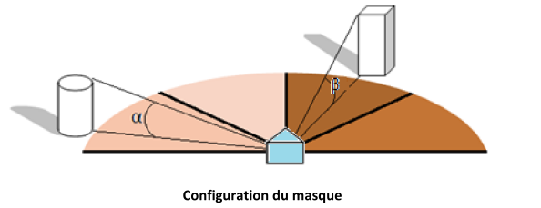 Les masques lointains s’appliquent à toute une façade. Une unique mesure pour toutes les baies d’une façade est donc acceptée. Les angles sont mesurés à partir du centre de la façade.